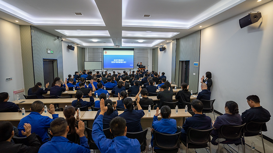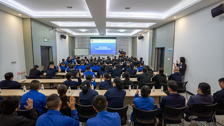 最后,全体职工代表对与职工切身利益紧密相关的《奖惩管理条例》、《绩效管理办法》、《员工职类职等划分及薪酬管理办法》、《考勤管理制度》、《福利管理制度》、《计件标准时薪管理办法》、《工伤管理规定》、《安环考核管理办法》等制度进行了集体审议,最终以举手表决的方式通过了上述制度,为企业规范管理、保障职工权益提供了明确的制度遵循