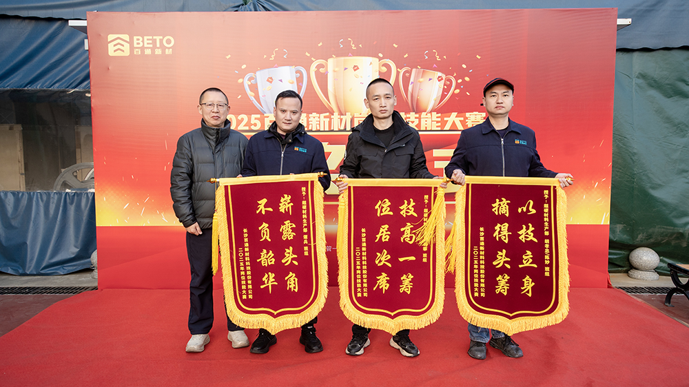 2025年12月19日早晨8点,宁乡经济开发区百通新材厂区内,朝阳初升,2025年超硬材料生产部员工技能大赛颁奖仪式隆重举行。经过两个多月的激烈角逐,71名各工序前三名获奖者及15名激励奖获得者登上领奖台,接受公司表彰。