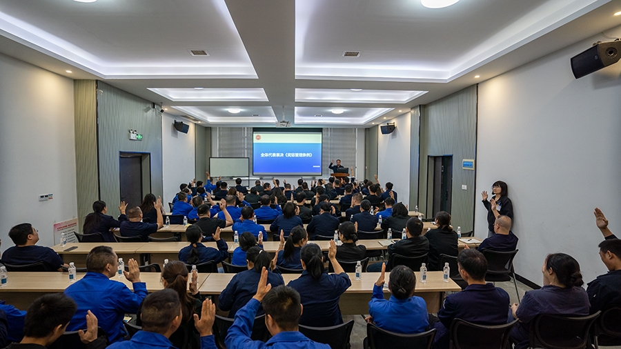 最后,全体职工代表对与职工切身利益紧密相关的《奖惩管理条例》、《绩效管理办法》、《员工职类职等划分及薪酬管理办法》、《考勤管理制度》、《福利管理制度》、《计件标准时薪管理办法》、《工伤管理规定》、《安环考核管理办法》等制度进行了集体审议,最终以举手表决的方式通过了上述制度,为企业规范管理、保障职工权益提供了明确的制度遵循